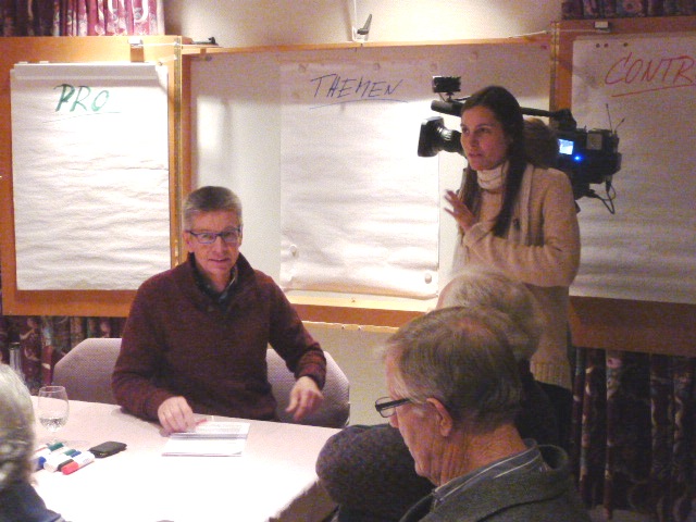 Sitzungsleitung Hans-Jürgen Saknus Foto: spd künRTL berichtet aus der Künzelsauer Diskussionsrunde Genau auf den Punkt hat der Vorstand des Künzelsauer SPD Ortsvereins zu einer Diskussionsrunde zur Berliner Regierungsbildung eingeladen. Morgens stand der Text des Koalitionsvertrages im Internet, abends lag er mit seinen 185 Seiten auf dem Tisch, um von den Mitgliedern durchleuchtet zu werden. Im Gasthof Adler in Garnberg waren aber nicht nur viele Genossinnen und Genossen erschienen. Ein Fernsehteam des Nachrichtensenders RTL Nachtjournal wollte von den Anwesenden einige Statements zur Stimmungslage in der SPD hören und von der Sitzung berichten. Diskussionsleiter Hans-Jürgen Saknus wies auf den sicher historischen Mitgliederentscheid der SPD in ihrer 150jährigen Geschichte hin, indem sie ihre Mitglieder verantwortlich mitnimmt und der Parteibasis das Vertragswerk zur Bewertung vorlegt.