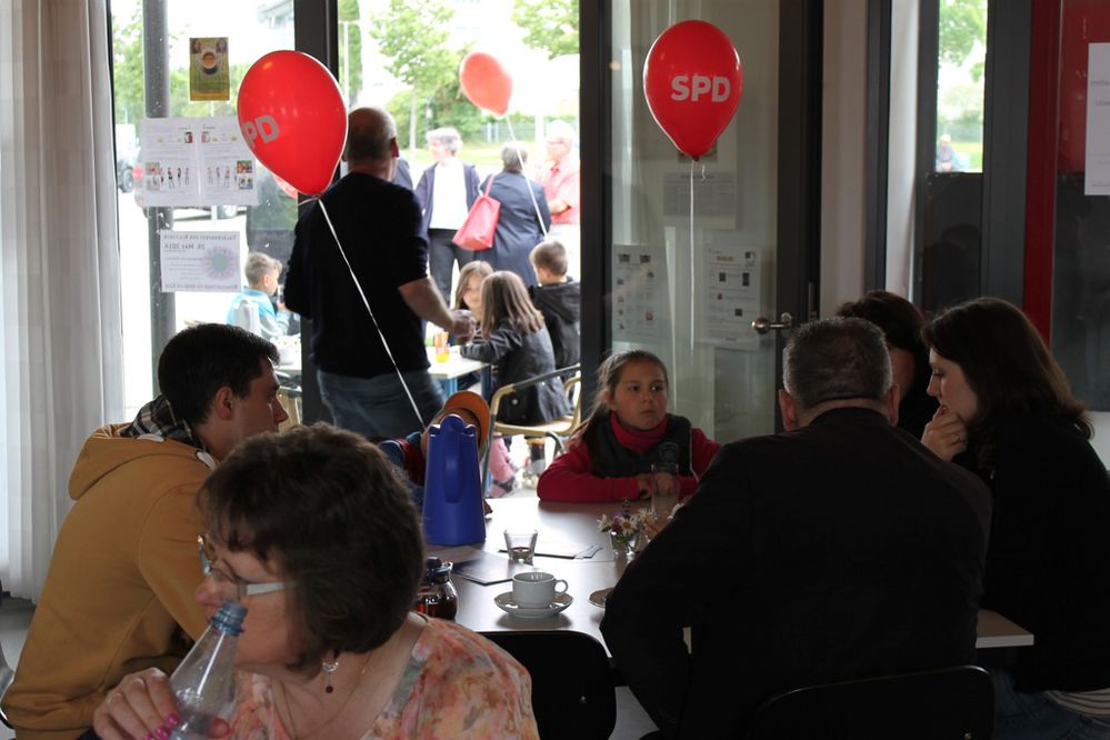Jedensfalls heute war die SPD Spitzenreiter, was die Kuchenbackkunst angeht, verschiedene Obstkuchen, Rührkuchen, Torten, alle super-lecker. Sehr gefragt waren die Luftballone bei den Kindern und die Di-Cleaner bei der Jugend - echt gut angekommen, auch die Gespräche zwischen Kandidaten und Bewohner.